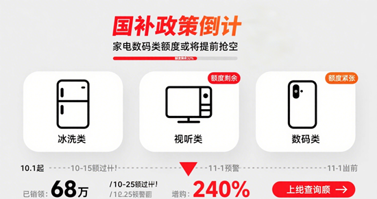 2025年8月29日,財政部第三批690億元國家消費補貼(簡稱“國補”)資金已全面下?lián)苤粮魇。€上線下的申領(lǐng)通道同步重啟。根據(jù)官方明確的時間表,這輪覆蓋家電、數(shù)碼、汽車、家裝四大領(lǐng)域的政策紅利將于2025年12月31日24時正式終止,且“不設(shè)延期、不設(shè)補時”。然而,距離截止日期尚有4個月,多地已出現(xiàn)補貼額度告急的苗頭——重慶12億元家電補貼15天搶空、山東某市500萬元額度1分鐘內(nèi)秒光、深圳新增的13類家電補貼上線首日門店客流激增300%。業(yè)內(nèi)預(yù)測,在雙十一大促與國補疊加的效應(yīng)下,家電數(shù)碼類補貼額度或?qū)⑻崆?-3個月被耗盡,一場圍繞“真金白銀”的消費競賽已進入倒計時。