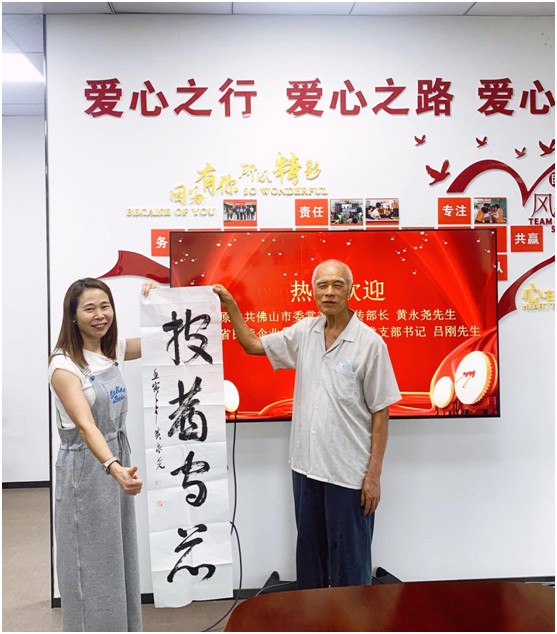 一行領導對博睿星科聯合發起的萬人牽手公益活動給予高度認可,一致表示今后會大力支持博睿星科的愛心事業。黃永堯先生并為博睿星科送上親手提筆的字畫,表達誠摯的祝福。