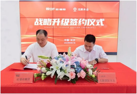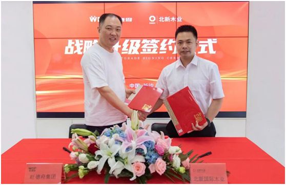 在充滿對未來的憧憬與期待中,雙方進入簽約環(huán)節(jié),旺德府集團董事長周曉輝先生與北新國際木業(yè)人造板事業(yè)部總經理李偉先生進行簽約。旺德府集團與北新國際木業(yè)擁有20年的堅實合作基礎,彼此守望相助,共謀發(fā)展。