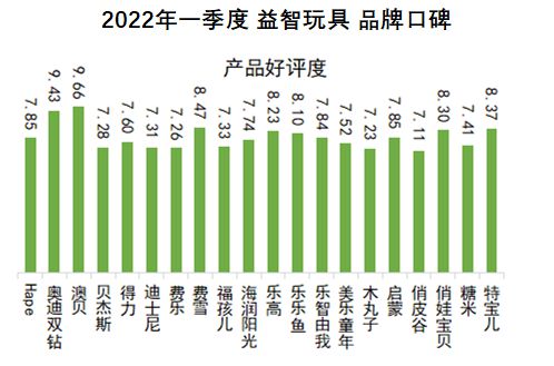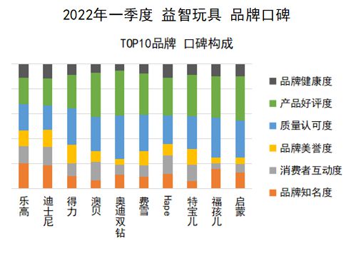 綜合來看,2022年一季度益智玩具TOP10品牌的口碑構成如下圖所示: