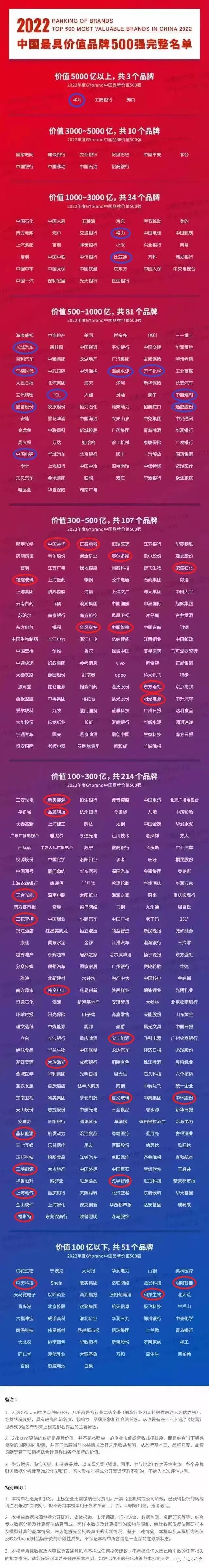 據(jù)了解,品牌價值評估權(quán)威機(jī)構(gòu)GYbrand獨家編制的2022年度《中國最具價值品牌500強(qiáng)》研究報告,主要評估依據(jù)是品牌價值,并不是按照企業(yè)的市值或營收規(guī)模排序,而是結(jié)合當(dāng)下錯綜復(fù)雜的國際國內(nèi)形勢,從品牌基本面、品牌業(yè)績、品牌強(qiáng)度、品牌貢獻(xiàn)等綜合計算得出各個品牌的價值,最終連續(xù)第四年發(fā)布中國品牌價值500強(qiáng)名單。
