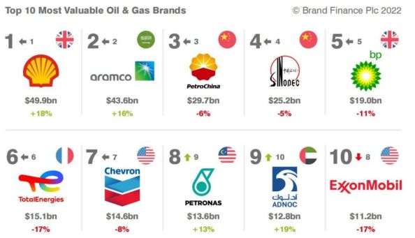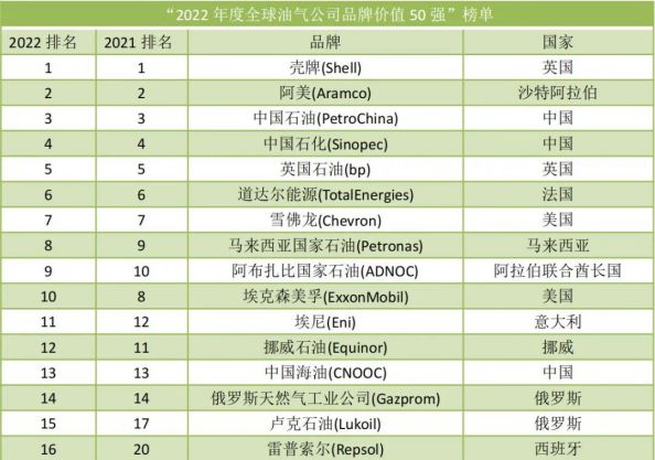 “2022年度全球油氣公司品牌價(jià)值50強(qiáng)”全榜單