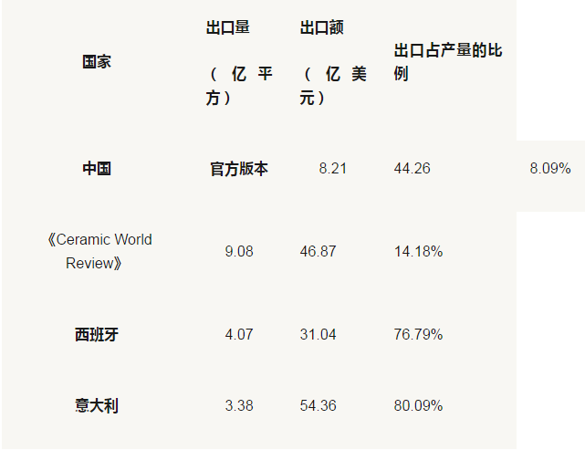 2、中國瓷磚出口官方版本以海關數據和中國建筑衛生陶瓷協會公布數據為主。
