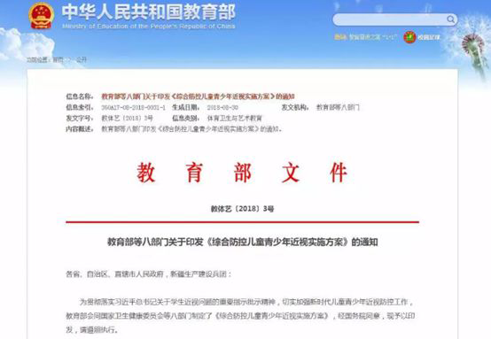 2018年8月,教育部、國家衛生健康委員會等八部門聯合印發了《綜合防控兒童青少年近視實施方案》,方案要求教室照明衛生標準達標率100%,落實教室、宿舍、圖書館等采光和照明要求,使用利于視力健康的照明設備。今年,教育部、國家衛生健康委與多個省級人民政府簽訂《全面加強兒童青少年近視防控工作責任書》,對降低兒童青少年近視率提出明確要求,近視防控上升為國家戰略。