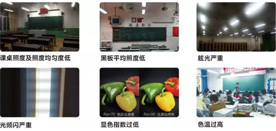 多項研究表明,除部分先天遺傳因素外,不良的教室照明環境是導致學生視力下降的主要原因之一。而由教育部教育裝備研究與發展中心、國家燈具質量監督檢驗中心、學校照明環境研究中心及各省市教育裝備部門于2016年起開始進行的全國學校照明現狀調研發現,我國學校教室照明達標率不足10%。